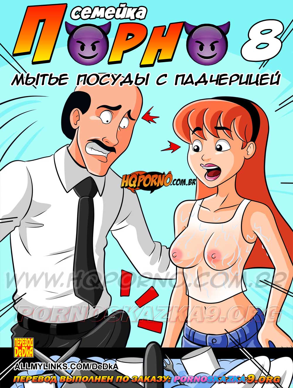 Читать далее 31 Июл 2025 23385 0Порно комикс «Семейка порно 8: Мытье посуды с падчерицей.»